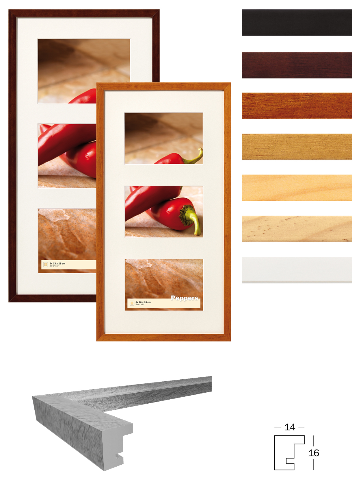 Holz Bilderrahmen Peppers von walther design mit Passepartout für 3 Bilder.