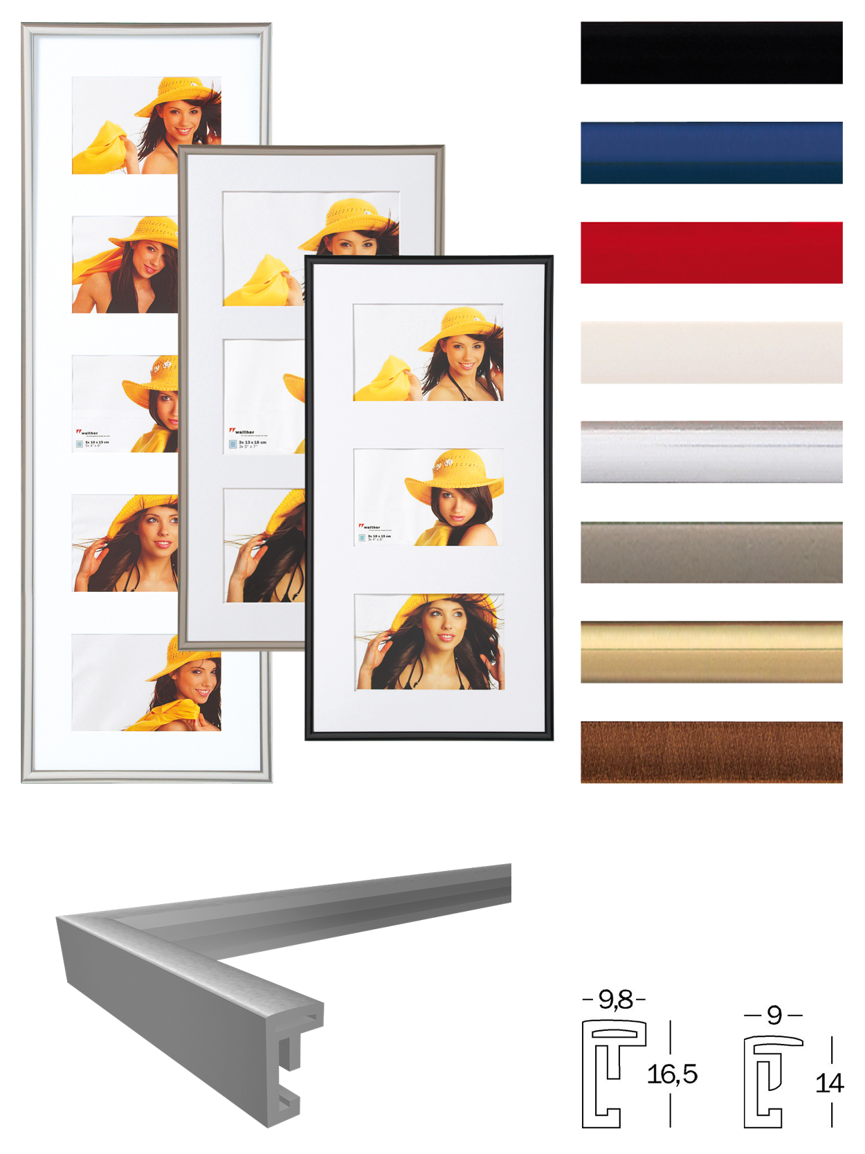 Der Topseller als Galerierahmen mit Mehrfachausschnitt-Passepartout. Schmaler rechteckiger Bilderrahmen in vielen kräftigen Farben aus Kunststoff. Günstiger Preis.
