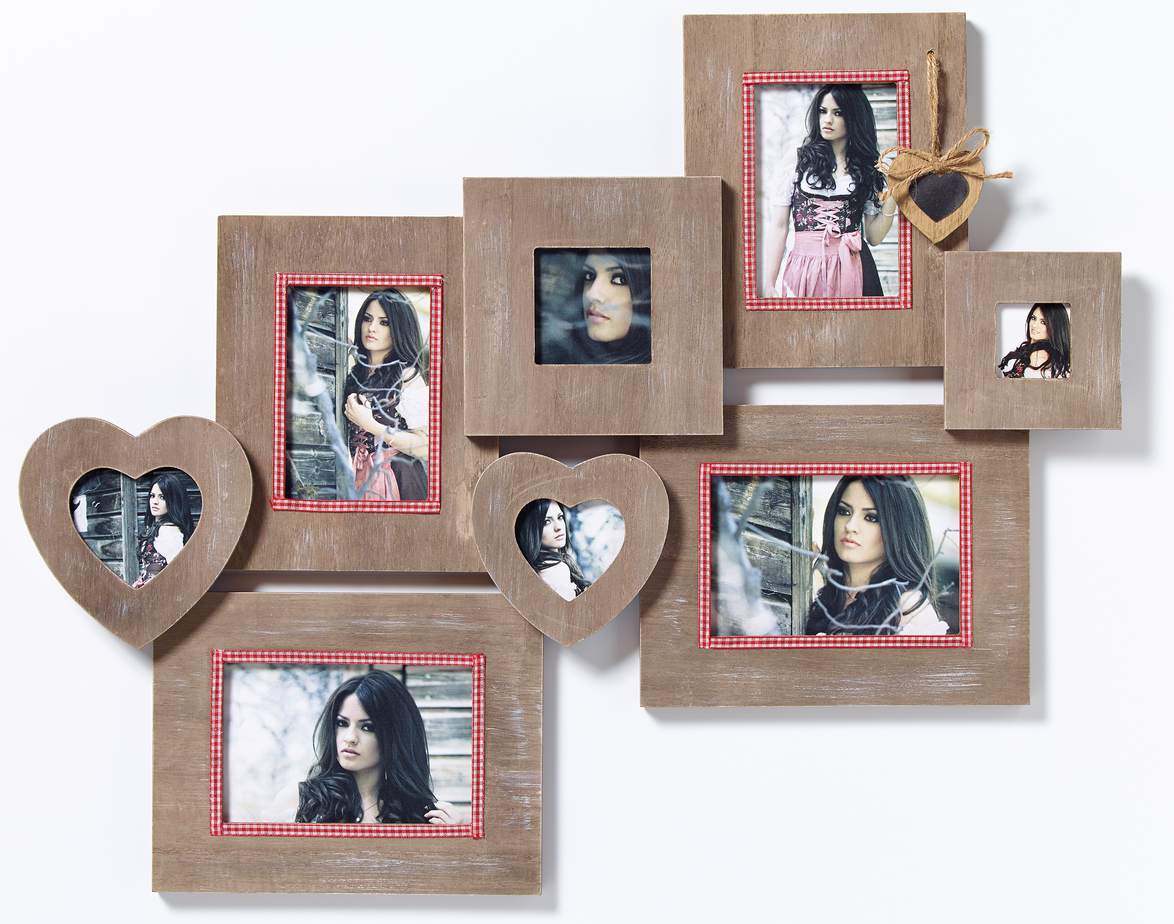 Galerierahmen Bavarian Heart Holz-Galerierahmen mit Herzapplikationen und Stoffeinfassung in bayrischem Landhaus-Stil. Farben: braun mit Stoff in: blau kariert | rot kariert Glas: gewaschenes Klarglas Rückwand: MDF mit Aufhänger Verpackung: geschrumpfte Folie, Karton-Schutzecken mit zusätzlichem...